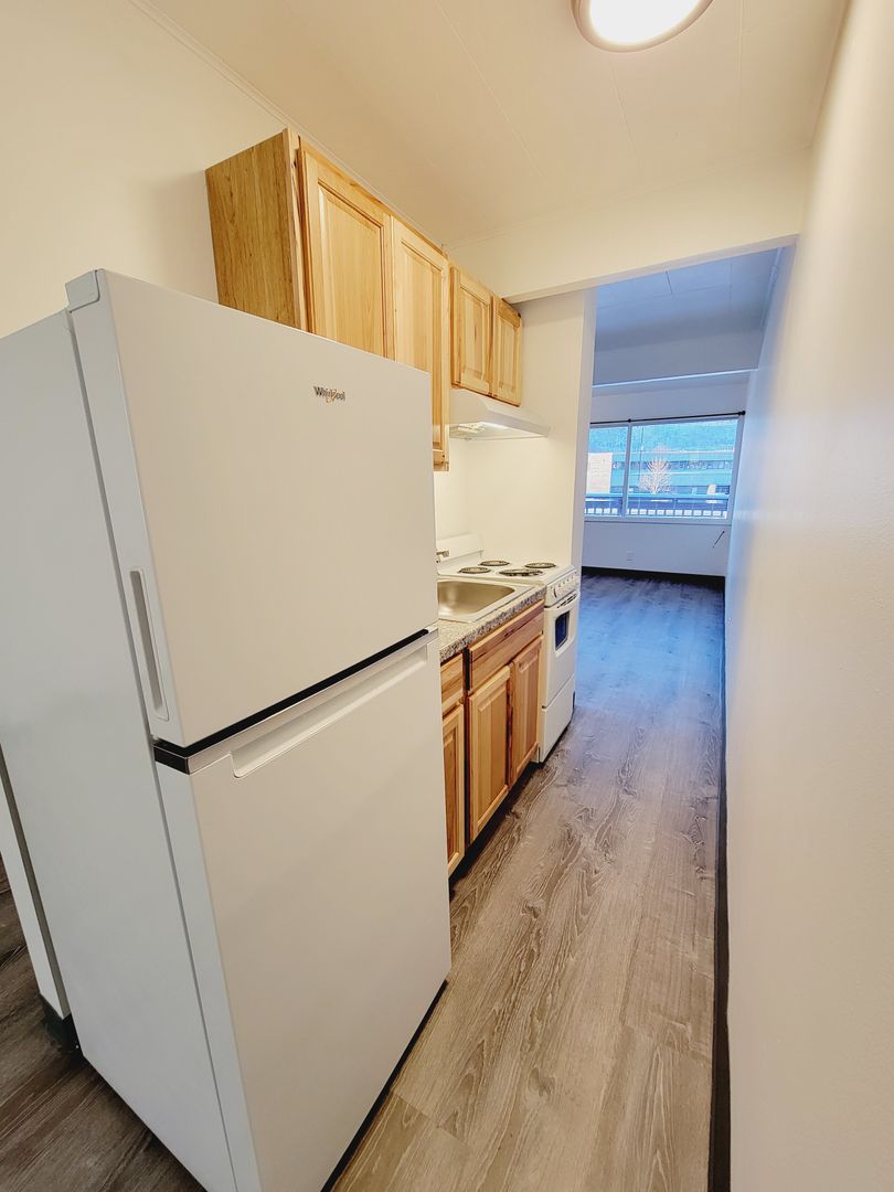 Top level unit with 1 bedroom, living room, kitchen, full bath. New hard surface laminate and paint throughout the apartment, coin-op common laundry on site, view of the channel and in walking distance of the grocery store, bus transport, post office, downtown restaurants, shops and Juneau business district. Rent includes water/sewer, garbage and snow removal. Tenant is responsible for cable and electric. No Pets, No Smoking and security deposit applicable. STREET PARKING ONLY.