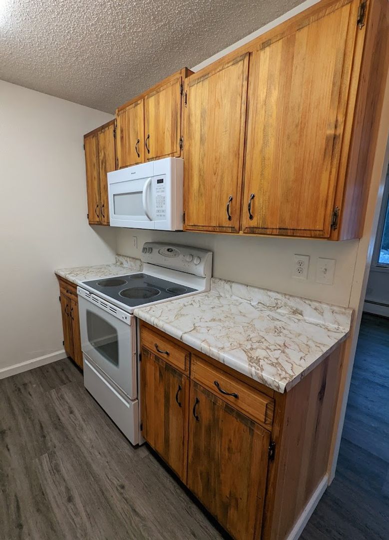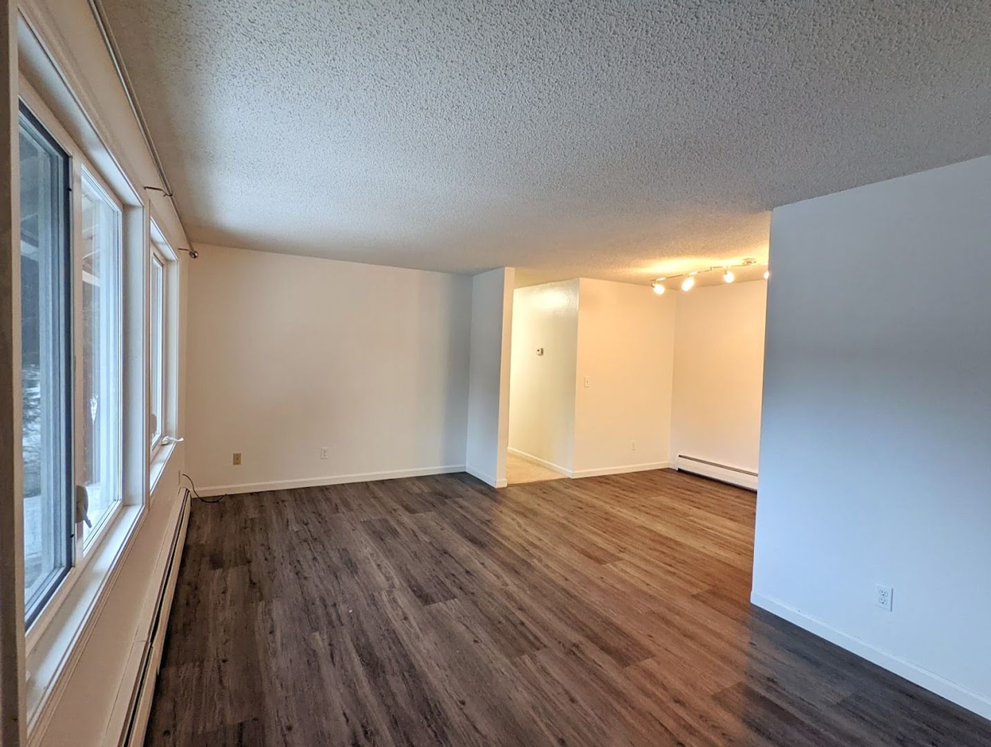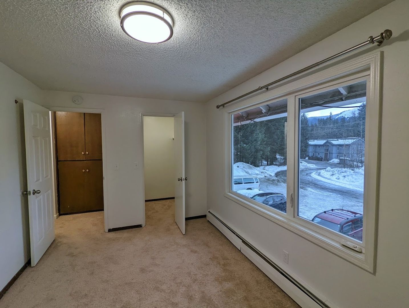 Upper level, 2 bedroom, 1 bath apartment located at 8829 Glendale St. Building is on the back loop & on the bus route. The building is an 8 plex with shared laundry. Apartment has large living room windows facing the mountains. Kitchen and dining area are located adjacent the living room. Full bathroom is located in the hall next to the bedrooms. Master bedroom has a walk-in closet. Rent includes hot water, water/sewer, garbage, snow removal and off street parking. Tenants are responsible for electric (heat) and cable/internet (optional). No pets or smoking. Minimum lease to 5/31/26. Looking for a long term tenant.