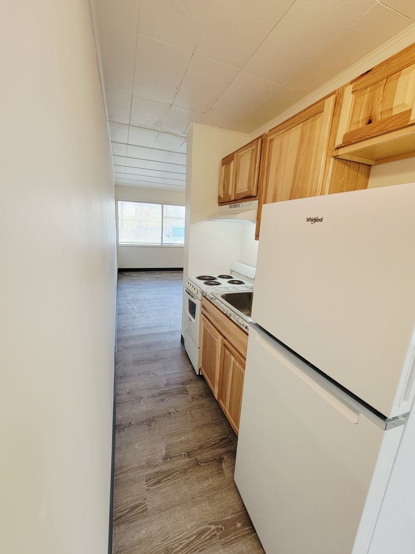 Ground level unit with 1 bedroom, living room, kitchen, full bath. New hard surface laminate and paint throughout the apartment, coin-op common laundry on site, view of the channel and in walking distance of the grocery store, bus transport, post office, downtown restaurants, shops and Juneau business district. Rent includes water/sewer, garbage and snow removal. Tenant is responsible for cable and electric. No Pets, No Smoking and security deposit applicable. STREET PARKING ONLY.